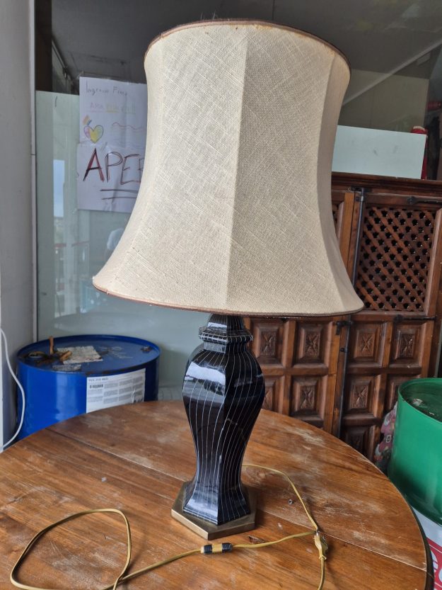 Lampada da tavolo in vetro di Murano anni 70/80 in ottime condizioni. Il vetro e di colore nero con sfumature trasparenti, la base in ottone.